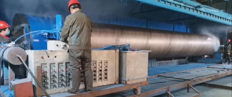 2. 管道預熱。對已經拋丸除銹處理合格的管道進行加熱,加熱至工藝要求的溫度范圍(200°-220°),而且必須加熱均勻,內外加熱一次成型,避免二次加熱破壞涂覆的涂層。溫度過高或者溫度過低,都會造成涂層附著力不足,影響涂塑鋼管的使用壽命。