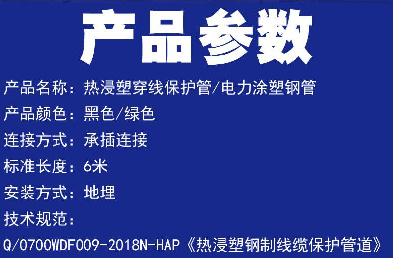 • 熱浸塑穿線管隨著電力電纜埋地敷設工程的迅速發展,對電纜套管提出的更高要求,熱浸塑穿線管是以高強度的鋼管為基礎材料,不飽的聚酯樹脂為基體材料,采用熱浸塑而成。